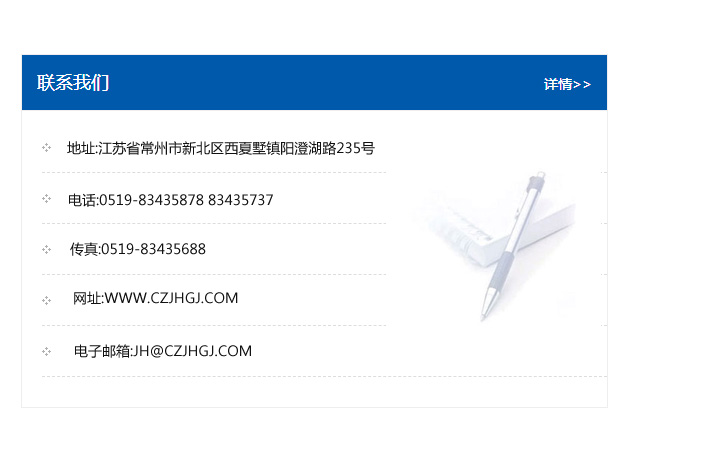 地址:常州市新北區友邦商務大廈1幢16、17層  電話:0519-85101652  傳真:0519-85112595  郵編:213022  網址:www_cz-jiayue_cn.gzhty.com  郵箱:xiajifengaa@163.com